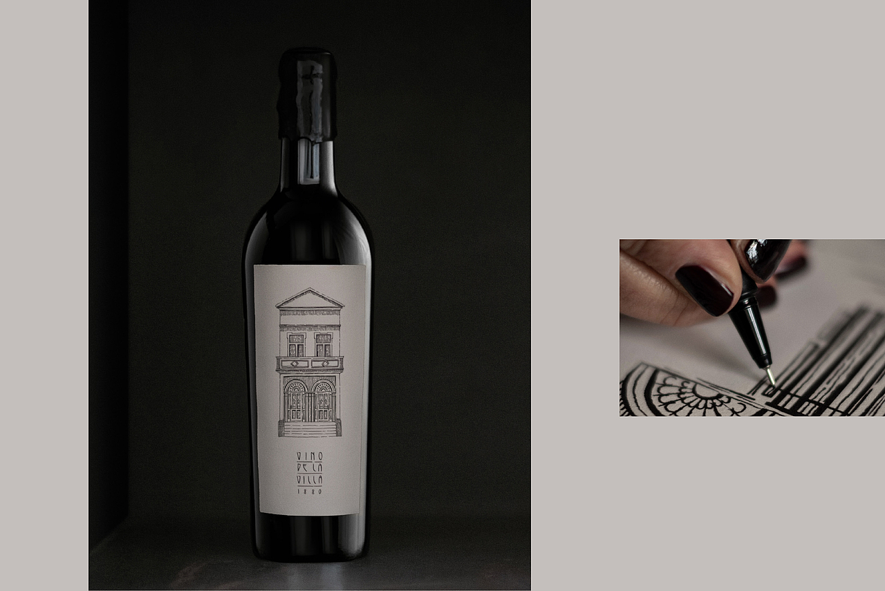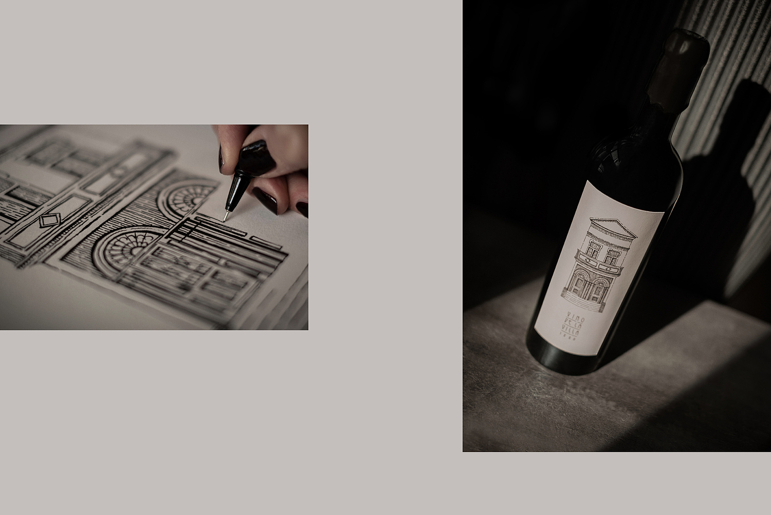 Zur feierlichen Wiedereröffnung der liebevoll revitalisierten Villa von 1880 wurde im restaurierten Gewölbekeller spanischer Wein ausgeschenkt. Der Charme und die Geschichte der Villa inspirierten uns, das historische Bauwerk mit feinen Linien detailreich zu zeichnen und auf strukturiertes Papier zu drucken. Vino de la Villa ist eine Hommage an die Anmut und die Geschichte dieses Prachtbaus.